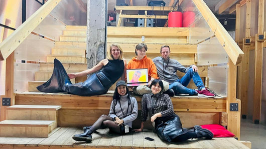 Collaborations: My practice also explores trans-species embodiment, ecological kinship, and multispecies relationality through collaborative projects across performance, installation, and digital media. In Tentacular Diorama ( Vienna, 2024), developed with textile artist Erika Farina, combined soft sculpture, sound, and performance to invite audiences into a speculative multispecies landscape, reimagining fluid kinships. Unlovable Creatures, created collaboratively at the Synthetic Minds Lab, uses motion capture, AI, and mythology to explore nonhuman intelligences, with the mermaid mediating between human and nonhuman worlds. In the video work Mermaid Utopia: A Conversation on a Sofa, a collaboration with Pilvi Porkola, extends this inquiry into dialogue, space, and shared imagination. Across these projects, collaboration is central, enabling movement, sensory engagement, and storytelling to foster ecological solidarity and challenge anthropocentric perspectives.